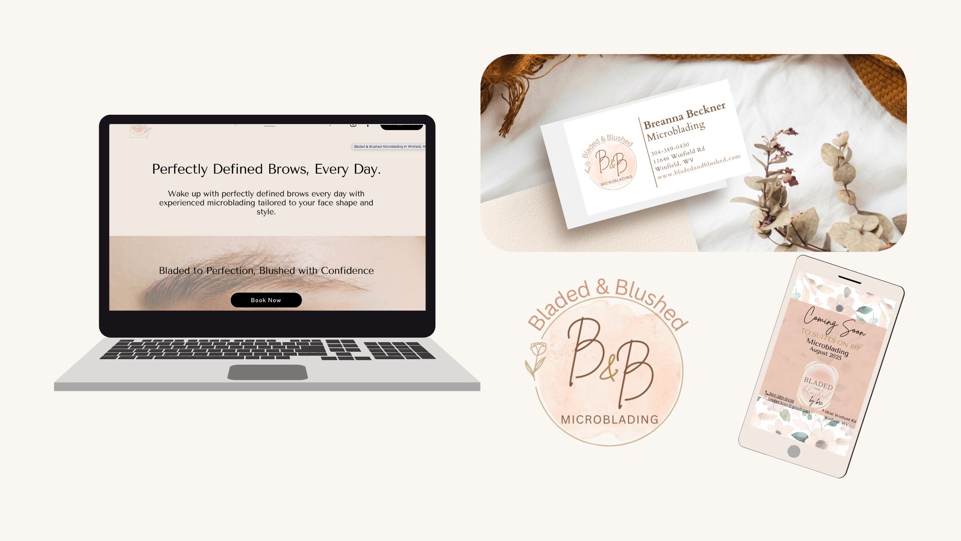 Together, the logo, business card, website, and branded graphics gave Bladed & Blushed a strong foundation for growth. The cohesive identity communicates luxury and professionalism, helping the business attract new clients and establish credibility both online and offline.